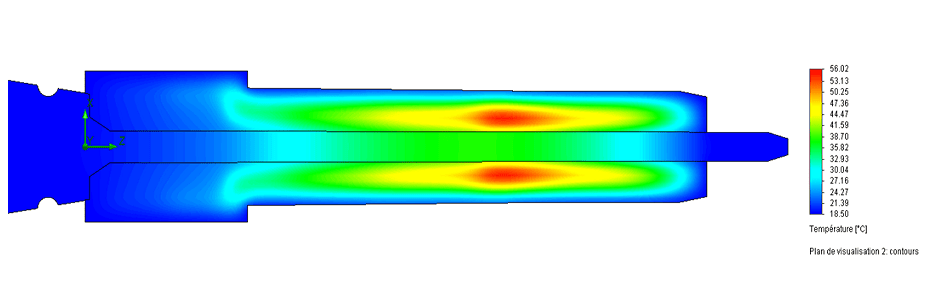 Dans l’exemple précédent nous avons cherché à calculer l’impact d’une régulation obtenue par frittage laser sur la régulation d’un fourreau de buse d’injection afin de stabiliser les températures.